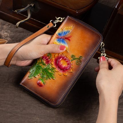 Ladies Leather Embossed Long Clutch Wallet