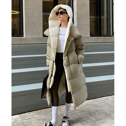The Women’s White Duck Down Long Hooded Warm Jacket is the ultimate winter essential, offering both warmth and style. Filled