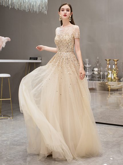 Product Details: Waist type: middle waist Color classification: champagne gold long section Dress pose: fishtail Material composition: 100% new polyester