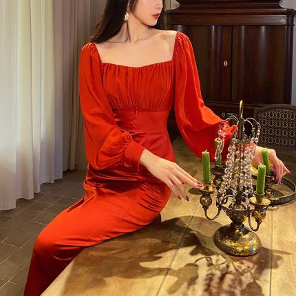Bubble Sleeve Red Dress