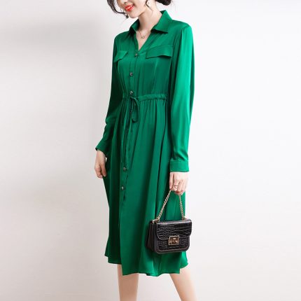 Product Information: Fabric name: Silk Pattern: Solid Color Process: High temperature setting Color: Olive Green Dimension information: Size: S, M,