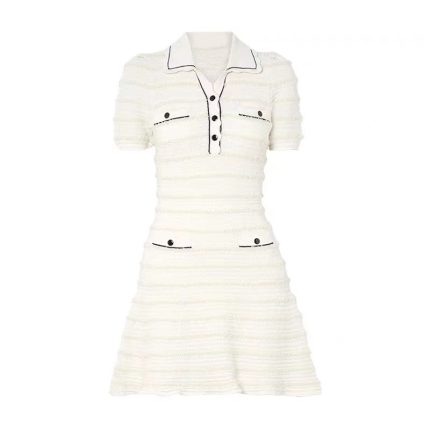 Product information : Pattern: Stripes Collar type: POLO collar Sleeve: Puff sleeves Color classification: Ivory white (high quality) Skirt type: