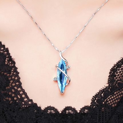 Sterling Silver Blue Crystal Necklace Chain Pendant Lady