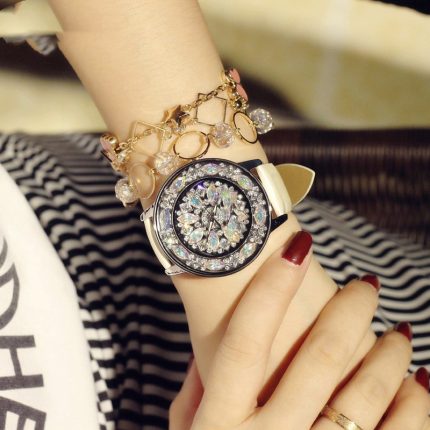 Product information: Style: Fashion Shape: Circular Popular Element: Water Diamond Movement Type: quartz movement Watch strap material: genuine leather Dial