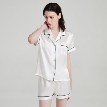Indulge in a restful night’s sleep with the Women’s Silk Short Sleeve Pajama Set, designed for ultimate comfort and elegance. Crafted from high-quality silk, this pajama set offers a soft, smooth touch against the skin, ensuring a luxurious and breathable experience throughout the night. The short sleeve design provides a cool and relaxed fit, perfect for warmer evenings or year-round comfort.