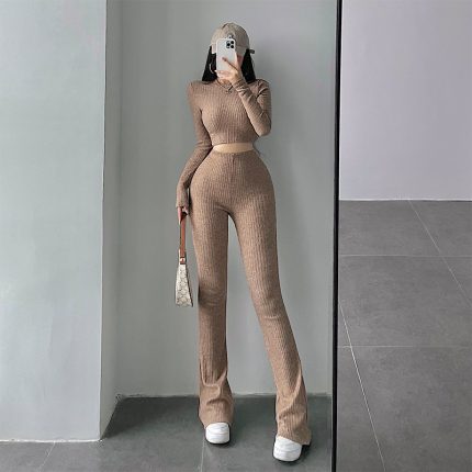 The sweater wide leg pants casual lazy knitted wool suit is the ultimate combination of comfort and style, perfect for relaxed days when you want to look chic without compromising on ease. Made from soft, warm wool, the suit offers a cozy feel while maintaining a polished look. The wide-leg pants provide a flattering silhouette, offering a relaxed fit that drapes beautifully, while the knitted sweater top adds texture and warmth, making it ideal for cooler weather.