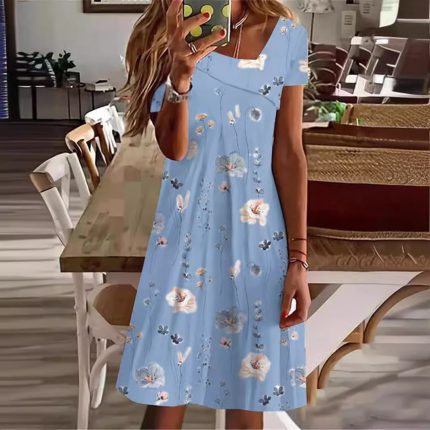 Cute Multi-Color Printed Elastic Short Sleeve Dress
