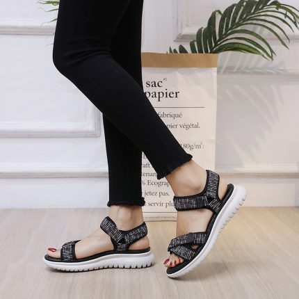 Add a touch of sparkle to your summer look with these Rhinestone Flat Beach Sandals for Women. Designed for both style and comfort, these sandals feature dazzling rhinestones and a lightweight flat sole for effortless wear. Perfect for seaside strolls, vacations, or casual outings, they easily match any outfit. Stay chic and comfortable all season long!