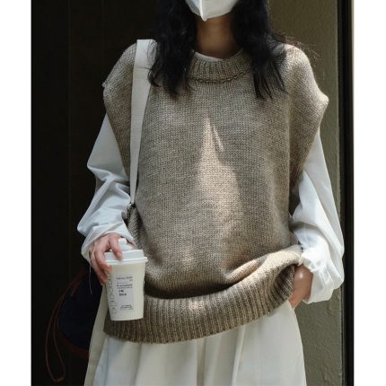 Wool Round-Neck Knitted Waistcoat, Loose Vest