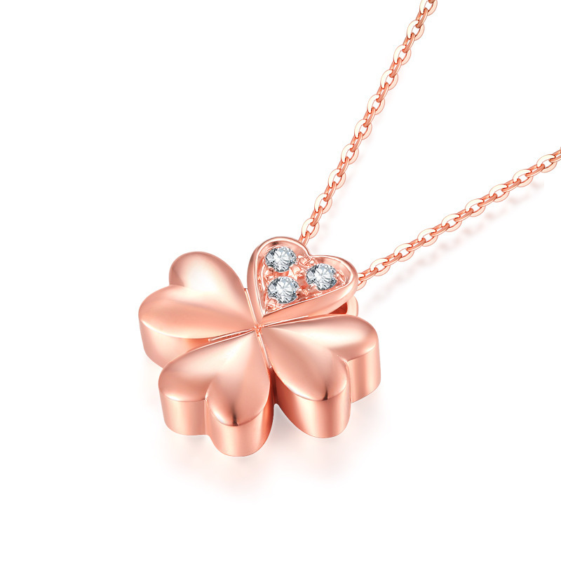 18K Gold Lucky Clover Rose Gold Diamond Pendant Necklace