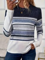 Summer Cool Girl Crew Neck Slim Striped Short Sleeves