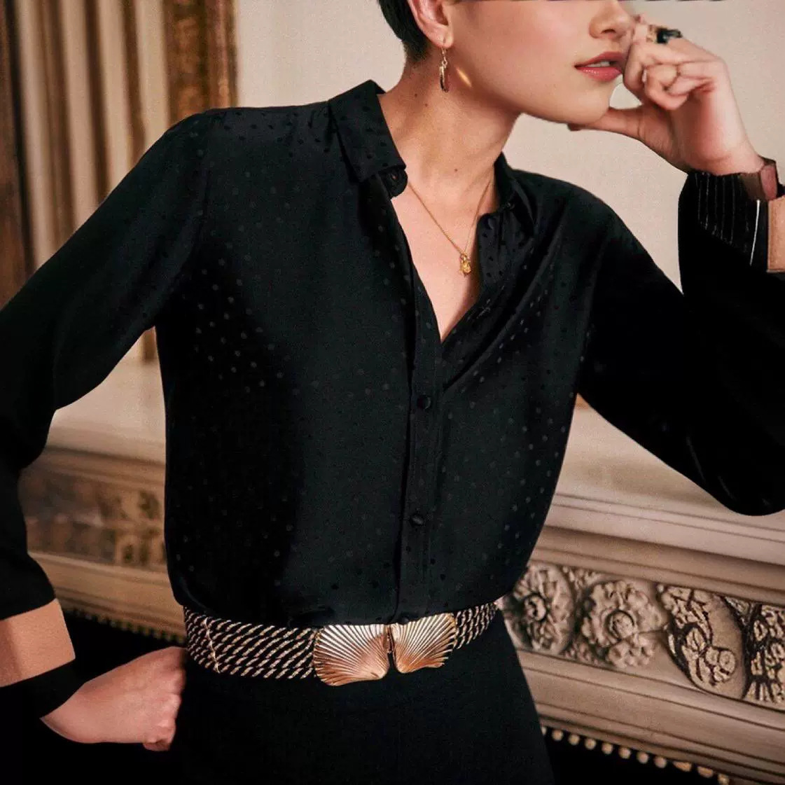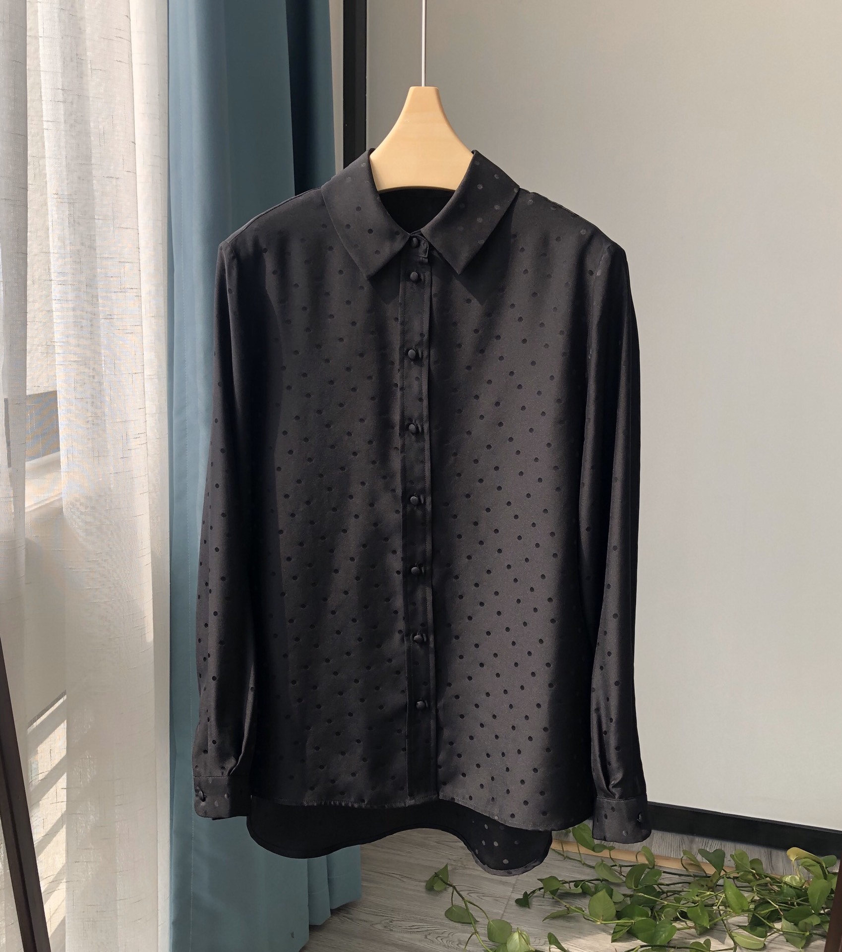 Home Tops Shirts French Loose Fit Silky Crepe Satin Long Sleeve Shirt