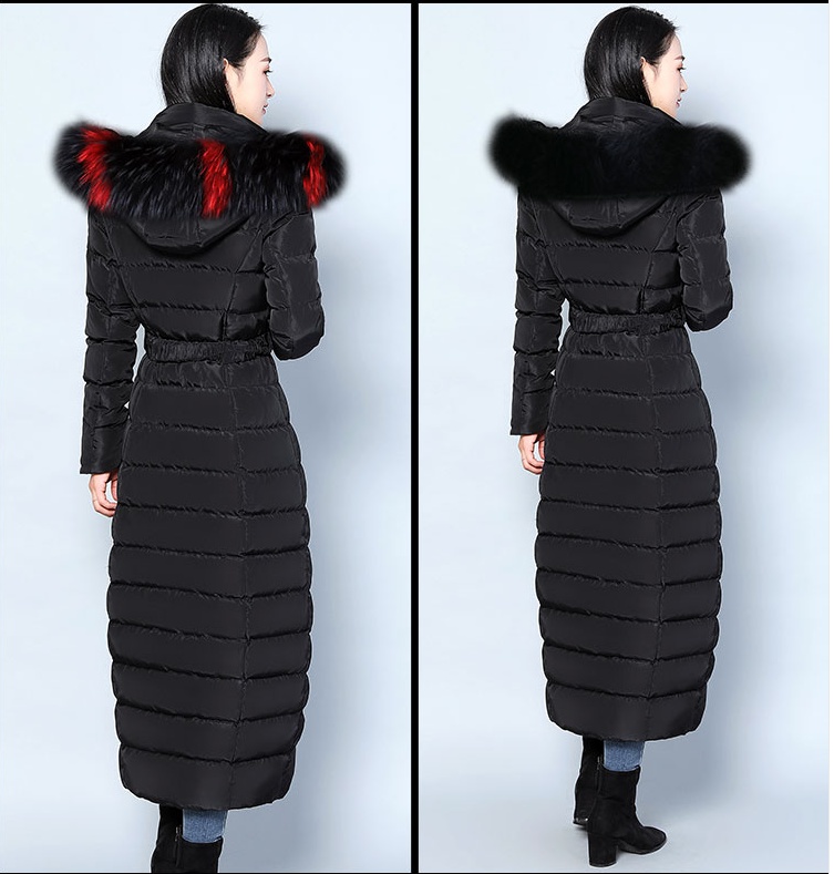 Luxurious Raccoon Fur Collar Mid-Length Down Coat
