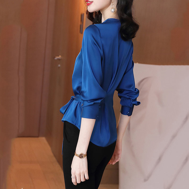 Ideal for both casual and semi-formal occasions, this blouse can easily be paired with skirts, trousers, or jeans for a chic, fashionable look. Whether you’re attending a dinner date, a night out, or even a casual gathering, the lace-up silk blouse exudes a timeless, luxurious charm. Its versatility and high-end design make it a must-have for women looking to elevate their wardrobe with a statement piece that combines fashion-forward details with classic elegance.