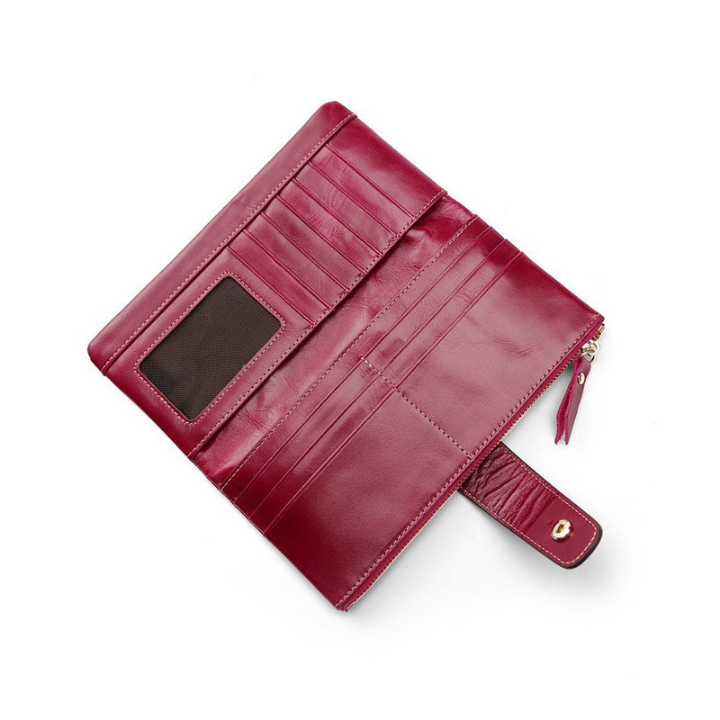 Ladies Long Wallet In Oil Wax Top Layer Cowhide