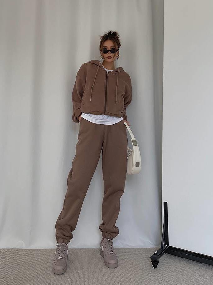 Home Hoodies & Sweatshirts Lamb Wool Fleece Sweatshirt And Sweatpants