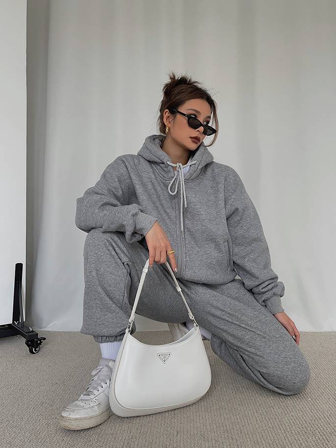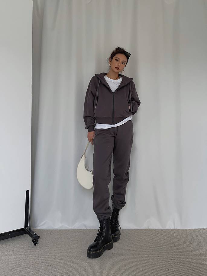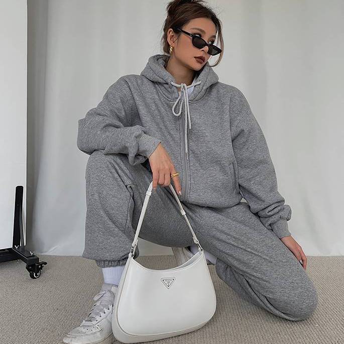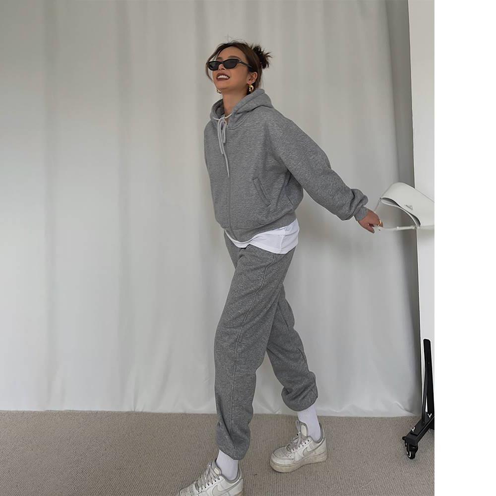 The sweatshirt features a relaxed, easy-fit design, while the sweatpants offer a snug, tapered fit with an elastic waistband for a flattering look and comfortable feel. Together, they create a stylish yet functional outfit that will keep you cozy from head to toe.
