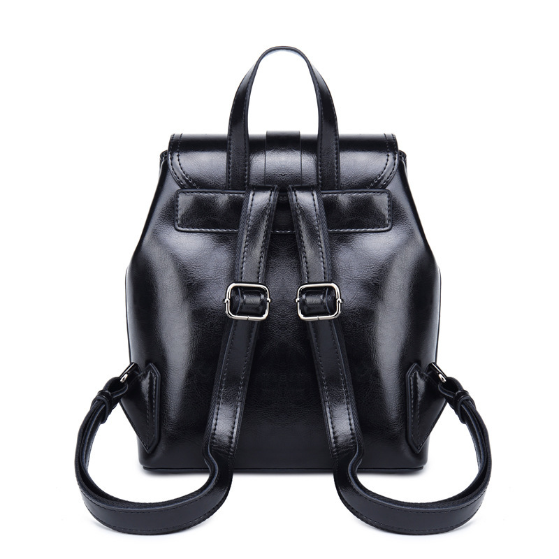 Pure black low schoolbag female leather Backpack