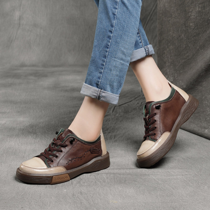 Home Shoes & Boots Sneakers Leather Casual Shoes with Thick, Color-Blocked Soles
