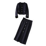 This fashion-forward suit is crafted from high-quality materials, ensuring both comfort and durability. The combination of classic tailoring with trendy accents makes it a standout piece for those looking to make a statement with their wardrobe. Whether paired with heels for a formal event or dressed down for a chic day out, the rivet lace V-neck coat front slit skirt fashion suit offers a perfect balance of boldness and elegance.
