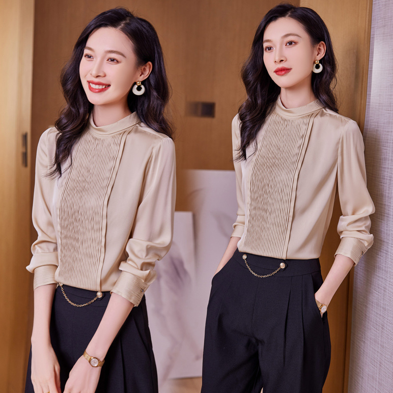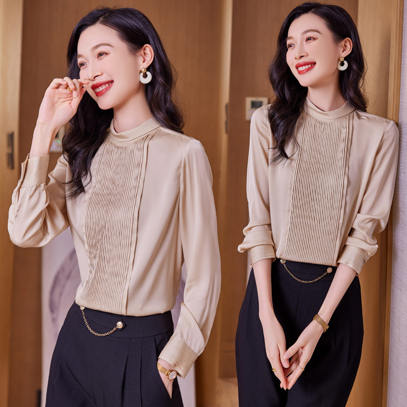French Loose Fit Silky Crepe Satin Long Sleeve Shirt