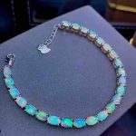 Home Jewelry & Watches Bracelets Silver Plated 18k Gold Inlaid Natural Dazzling Opal Bracelet