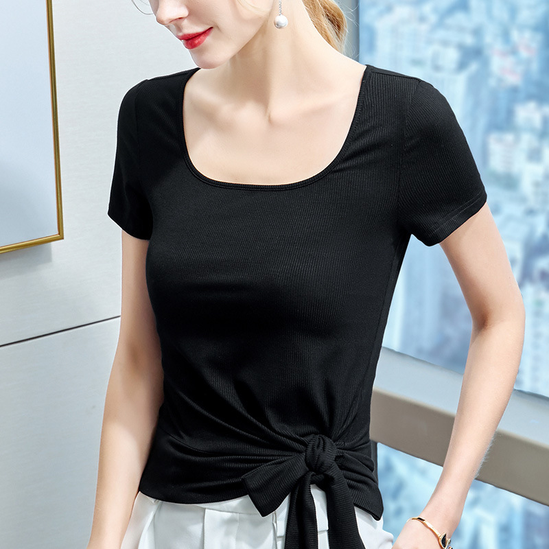 This versatile blouse is ideal for casual outings, work, or evening events. The square neck adds a sophisticated, contemporary touch, while the elastic material keeps it both stylish and comfortable. Whether tucked into your favorite pants or left loose for a more relaxed vibe, this Solid Color Elastic T-shirt is a must-have for women who love simplicity with a modern twist.