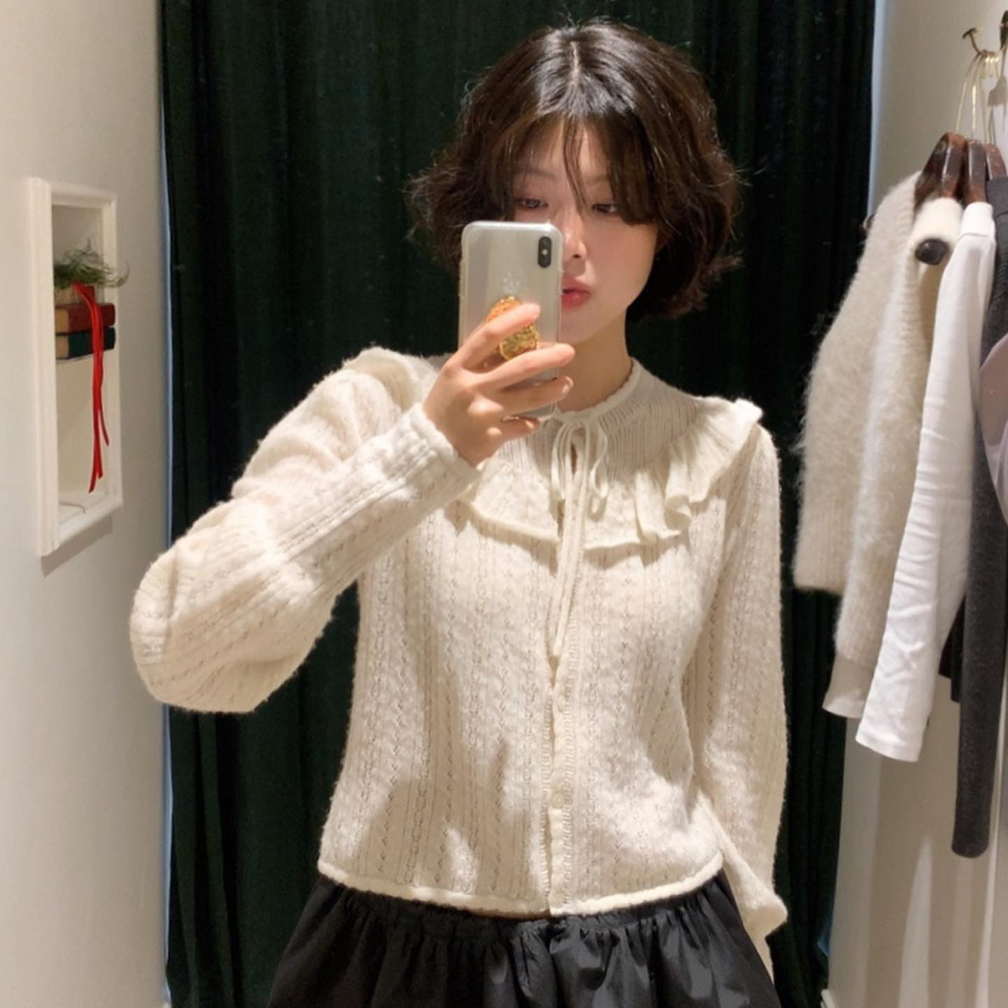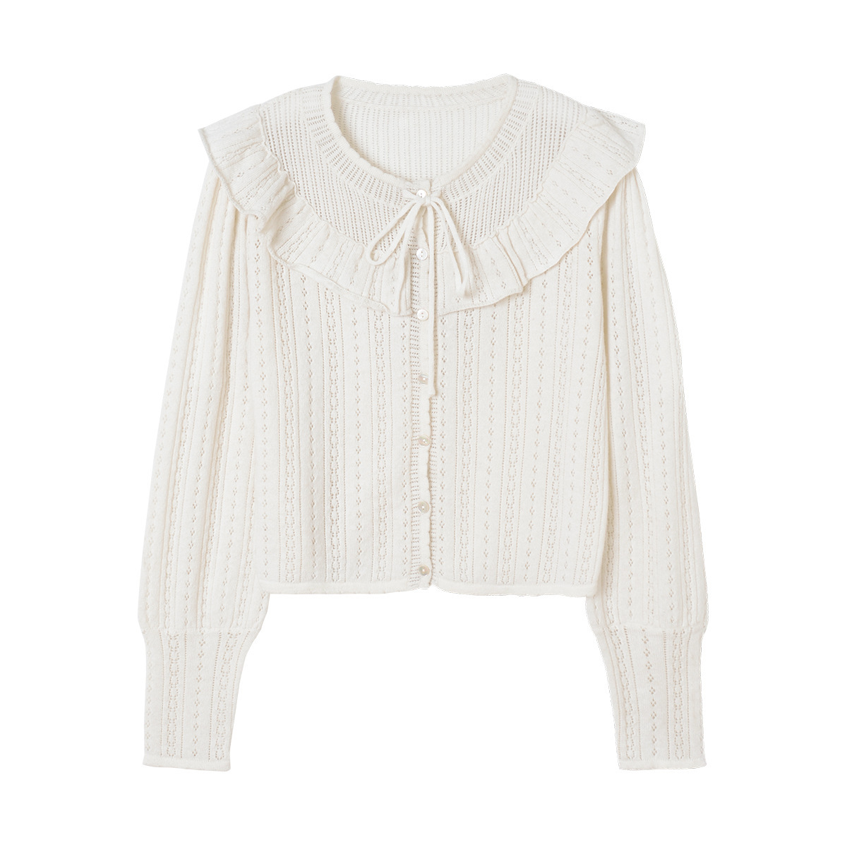 Be the first to review “Solid Color Round Neck Hollow Lace Knitted Cardigan Top” Cancel reply