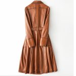 With its refined, minimalist style, this belted leather coat can easily transition from casual to more formal occasions. Whether worn with jeans for a laid-back look or layered over an evening dress for added elegance, the sheepskin leather belted coat brings effortless sophistication to any outfit. Ideal for women who appreciate high-quality craftsmanship and a sleek, slimming fit, this coat is a versatile and timeless addition to any wardrobe.