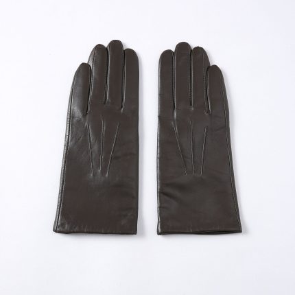 Ladies Sheepskin Perforated Breathable Single Leather Touch Screen Full Finger Gloves