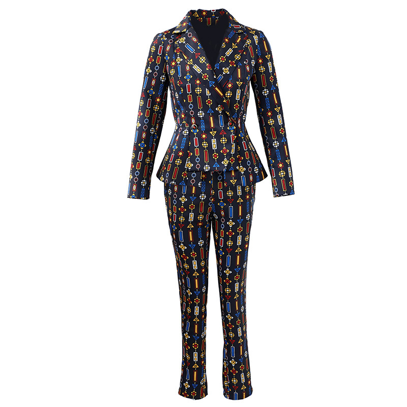 Top: button with placket, shoulder pad at shoulder, suit collar