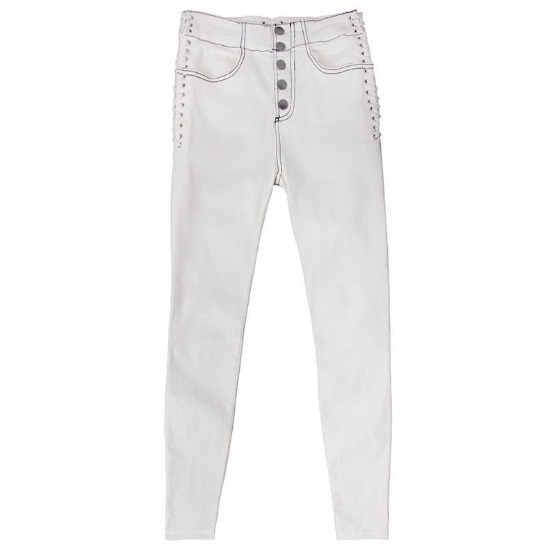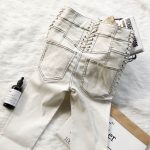 The versatile design of these jeans allows for multiple styling options, from tucking in a blouse for a polished ensemble to pairing with a casual tee for a relaxed vibe. The drawstring detail adds an extra layer of comfort while maintaining a chic aesthetic, making these white jeans a must-have staple for any wardrobe. Whether you’re dressing up or down, these jeans offer the perfect combination of comfort and style for all occasions.