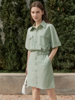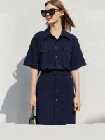 The women’s V-neck waist shirt dress is a versatile and stylish piece that combines the classic look of a shirt with the flattering silhouette of a dress. Featuring a V-neckline, it enhances the neckline while offering a subtle, elegant detail. The cinched waist design creates a slimming effect, accentuating the curves and providing a more tailored fit, while the loose skirt offers comfort and ease of movement.