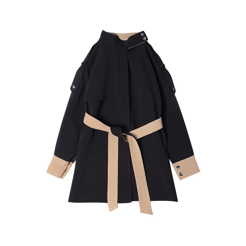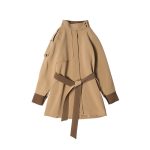 Crafted from high-quality materials, this coat offers warmth and comfort, while the distinctive design ensures you stand out in any crowd. The lace-up feature, combined with the contrast color panels, gives the coat a customizable fit and adds an element of stylish detail. Ideal for both casual and more formal occasions, this coat is perfect for women who love combining classic fashion with a bold, fashionable twist. Whether paired with dresses, skirts, or trousers, the cloak style lace-up coat adds elegance and flair to any outfit.