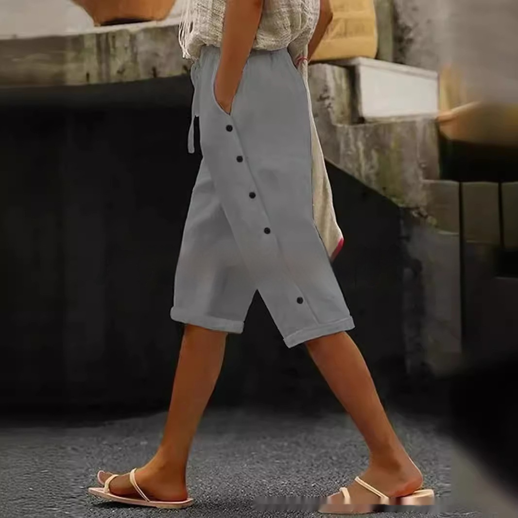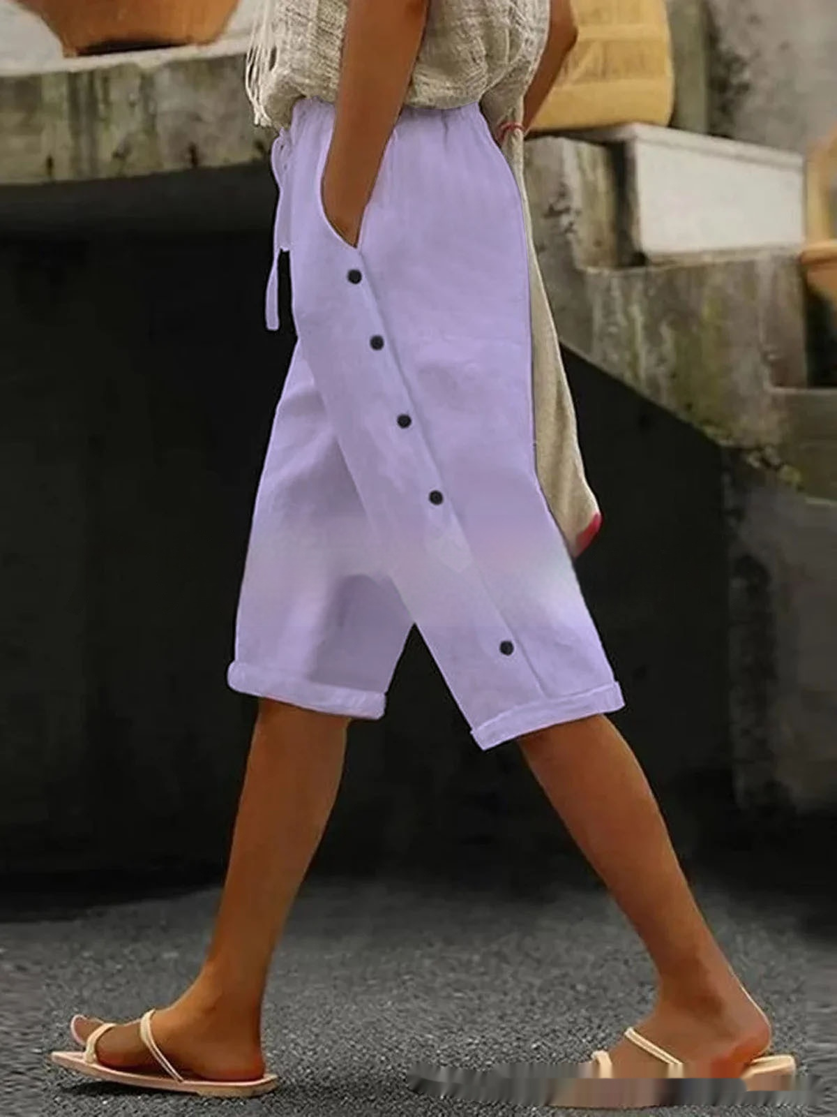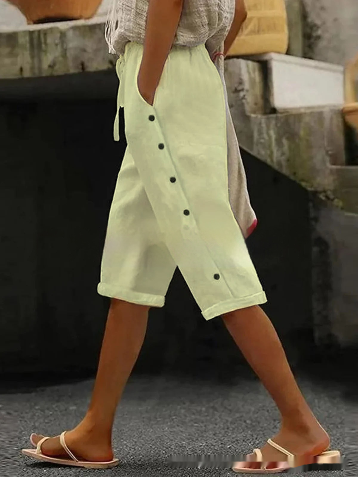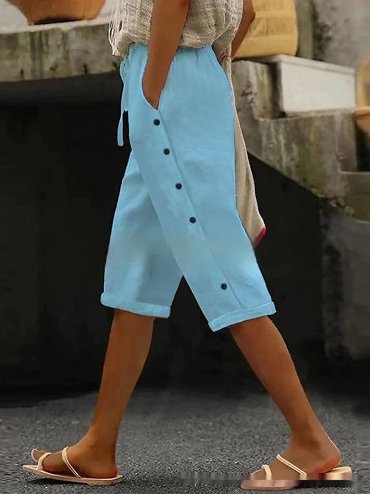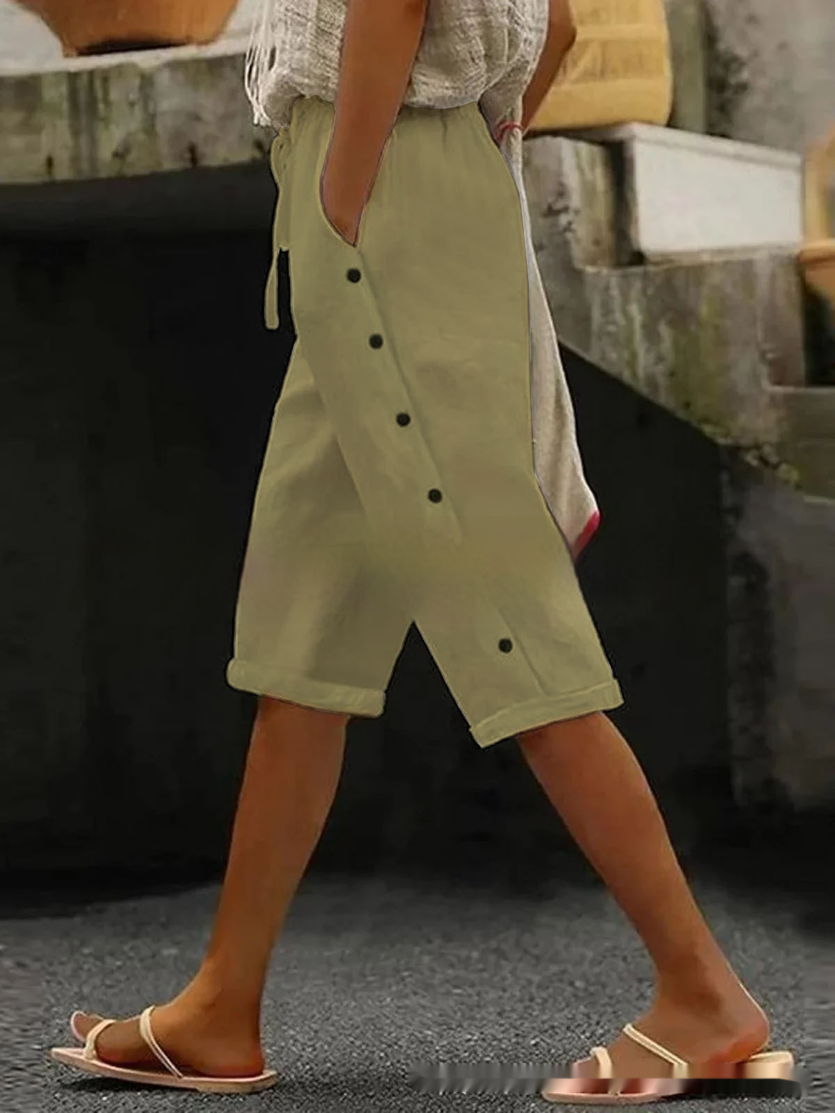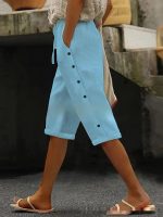 Stay effortlessly stylish with these Cotton-Linen Cropped Pants, designed for breathable comfort and a relaxed fit. Featuring a solid color design, functional pockets, and button accents, these pants offer a chic yet casual look. Perfect for daily wear, vacations, or weekend outings, they pair beautifully with blouses, t-shirts, or sandals for a timeless and versatile outfit.