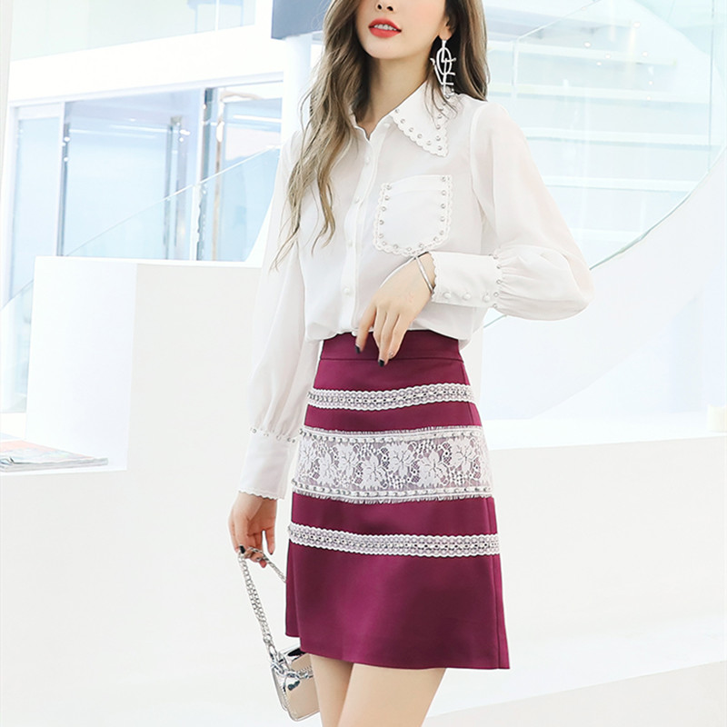 Home Business & Business Casual Suits Diamond-studded Shirt And Skirt Two-piece Suit