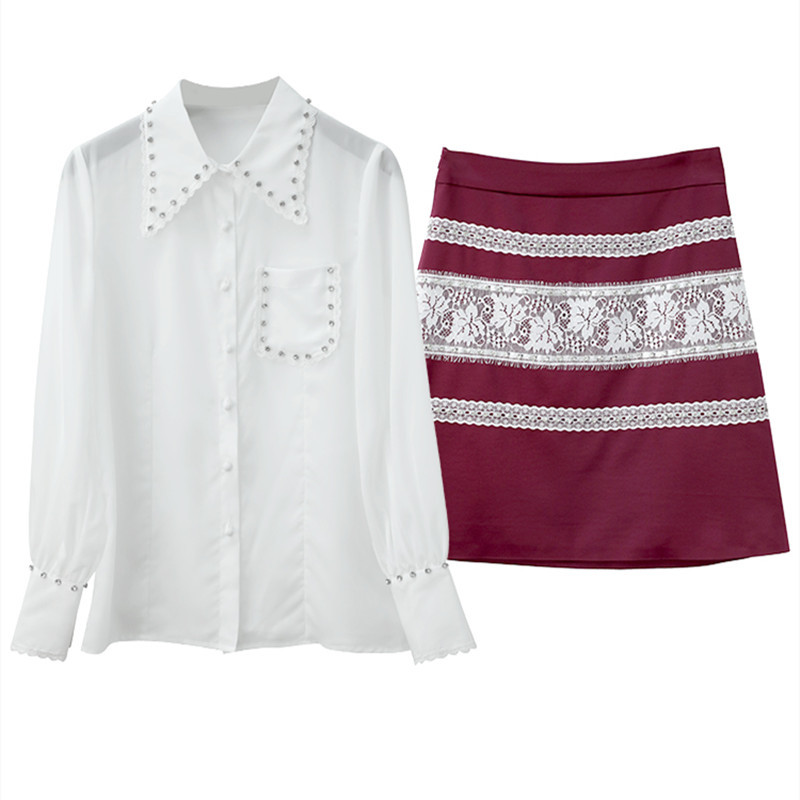 Diamond-studded Shirt And Skirt Two-piece Suit