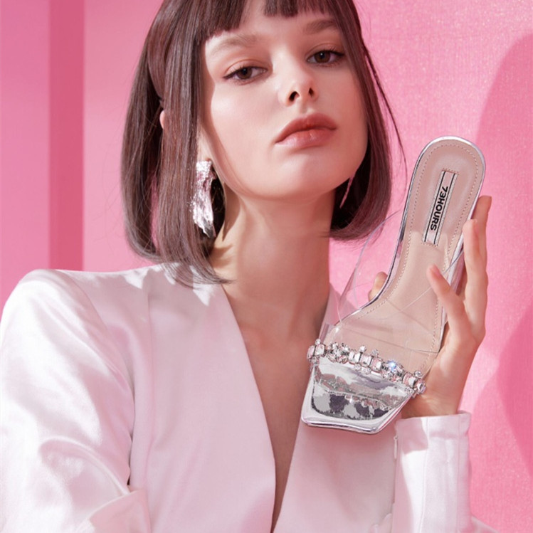 Home Shoes & Boots Sandals Fashion Crystal High Heel Square Toe Sandals