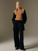 The women’s fashion retro contrast color mid-length wool overcoat is a stylish and eye-catching piece that combines classic sophistication with modern flair. Crafted from high-quality wool, this overcoat provides warmth and comfort during colder months, while its mid-length design offers a flattering, versatile fit. The retro-inspired contrast color details add a bold, fashionable twist, making it a standout piece in any wardrobe. These contrasting panels, typically in shades like deep navy, burgundy, or charcoal, create a striking visual effect, giving the coat a chic and timeless appeal.