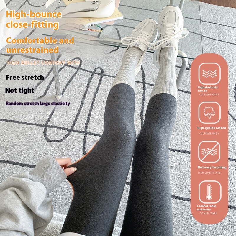 The elastic waistband ensures a secure fit, while the stretchable fabric allows for easy movement and flexibility. With a versatile, simple design, these leggings can be paired with everything from oversized sweaters to casual tunics or coats for a cozy, chic look.