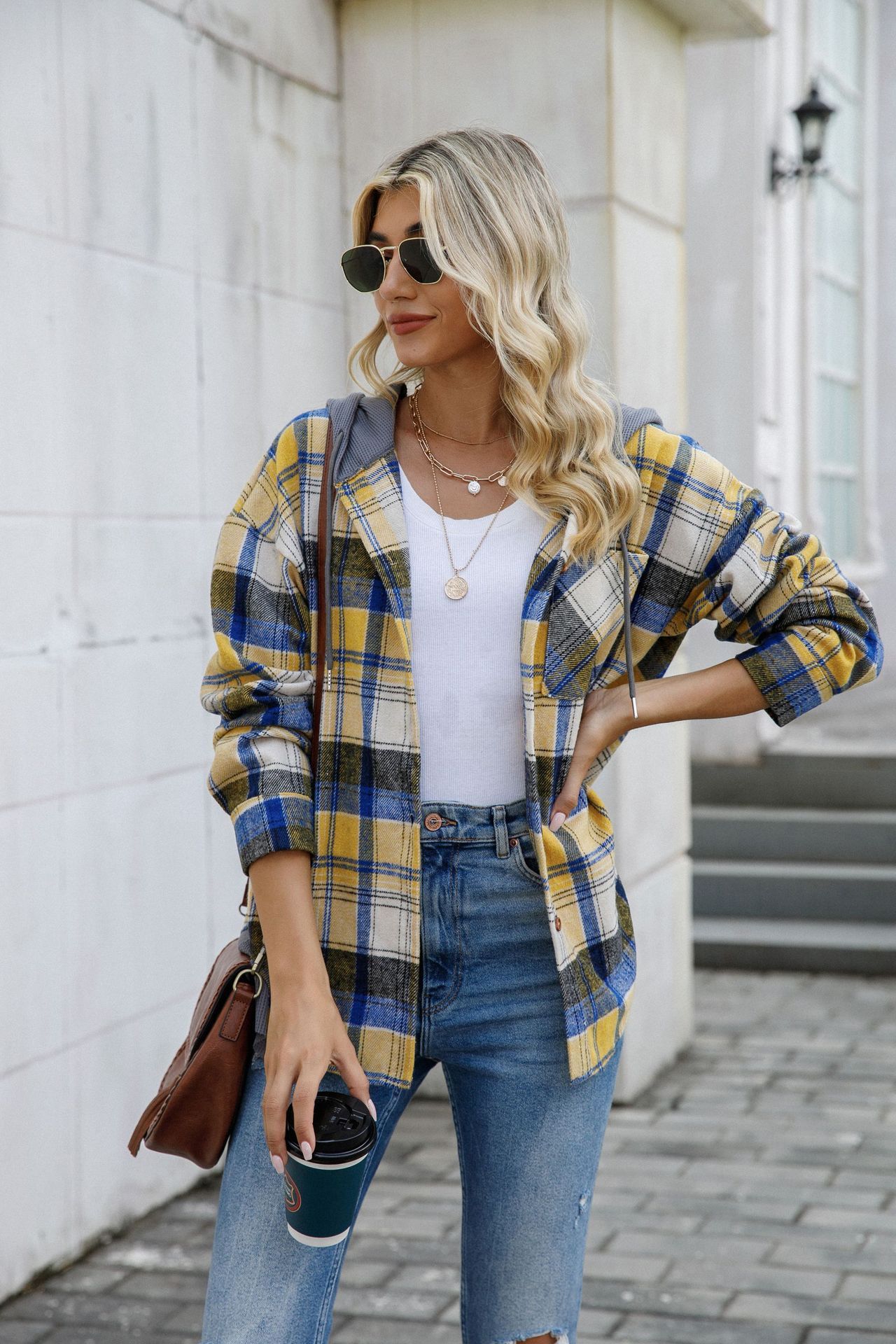 The blouse-style design gives it a feminine and relaxed fit, while the plaid elements offer a classic, timeless appeal. Whether worn casually with jeans or dressed up with a skirt, the hooded spliced plaid blouse woolen coat is versatile enough for a variety of occasions. Ideal for women who appreciate a mix of classic style and contemporary details, this coat is both practical and chic for everyday wear.