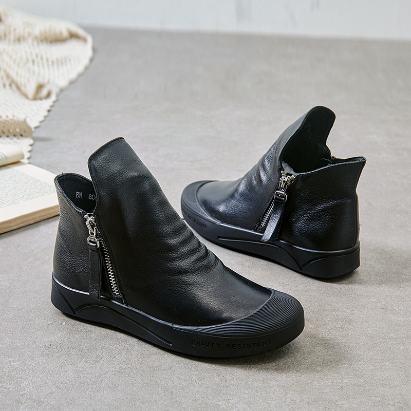 Home Shoes & Boots Boots Leather Side Zipper High-Top Boots