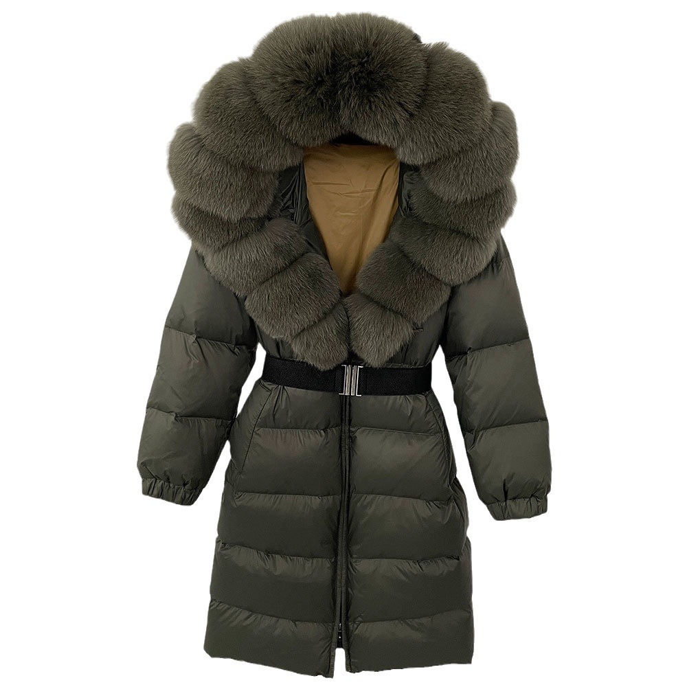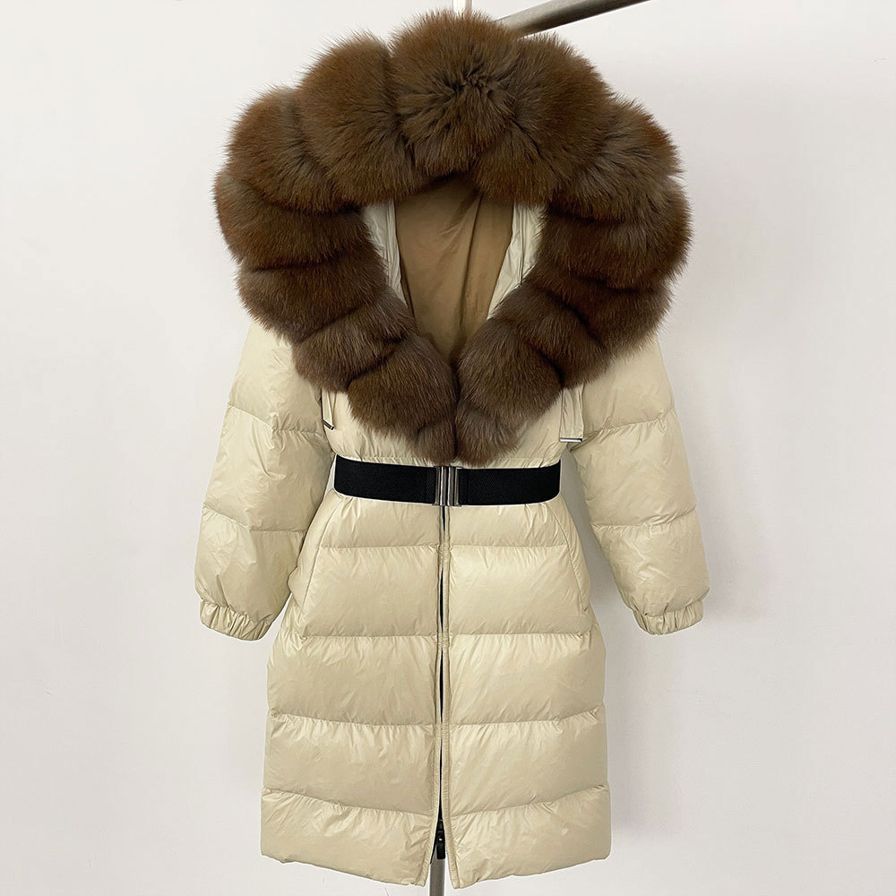 The real fox fur collar adds an opulent touch, providing extra warmth around the neck and elevating the coat’s overall look with its luxurious texture. The attached hoodie ensures added coziness, making it perfect for both outdoor activities and casual outings. Whether you’re heading out in the snow or braving a chilly city day, the cinched hoodie fur down jacket coat is the perfect blend of sophistication and practicality for women who love to stay stylish without sacrificing warmth.