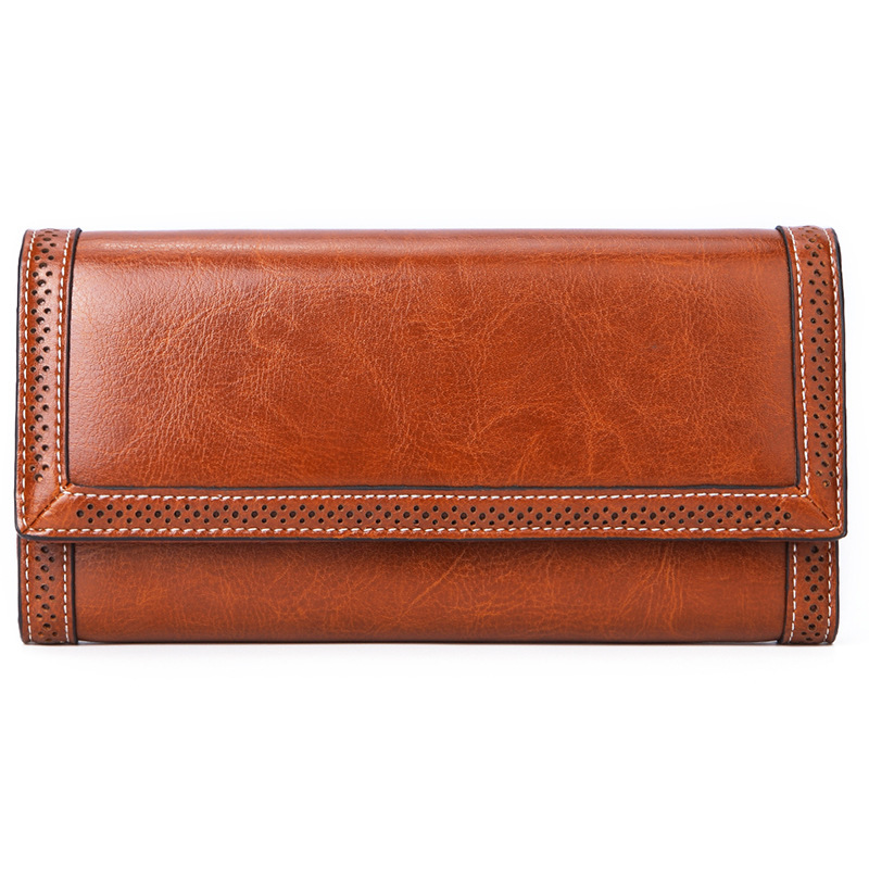 Ladies New European And American First Layer Leather Long Wallet