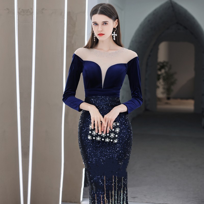 Home Dresses Long Sleeved Temperament Fishtail Dress