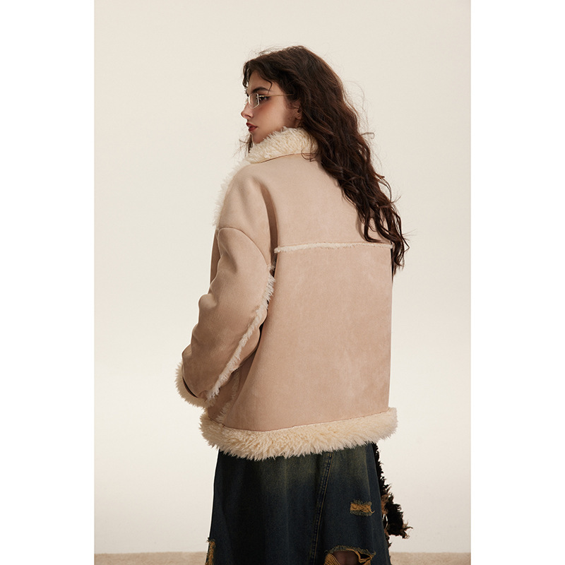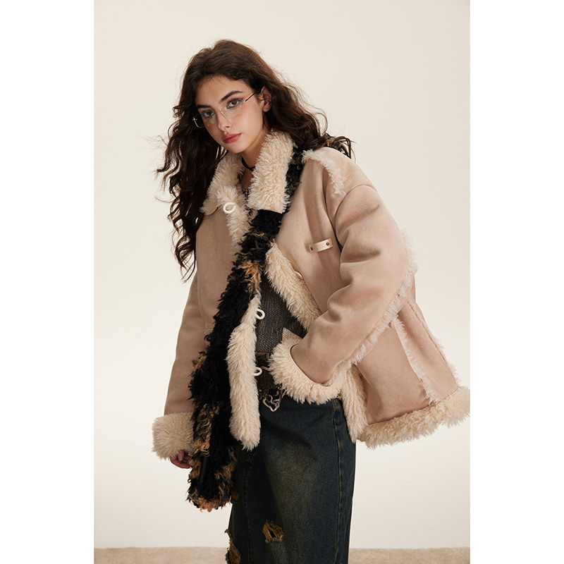 Patchwork Plush Cotton-padded Clothes Retro Loose Cotton Coat