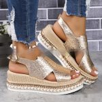 These women’s plus size buckle platform sandals are designed to make a bold statement. Featuring a stylish crocodile pattern and a secure buckle, they provide both comfort and a fashionable edge. Ideal for casual outings or dressier events, these sandals combine support with trendy design for a chic summer look.
