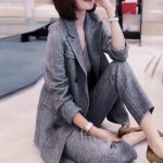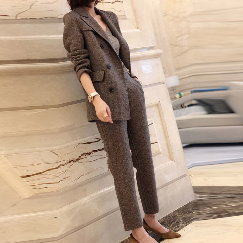 The sports jacket style adds a touch of versatility, allowing you to transition seamlessly from work to casual settings. Paired with the coordinating trousers or skirt, this suit is both timeless and modern, giving you a refined appearance that exudes confidence and professionalism.