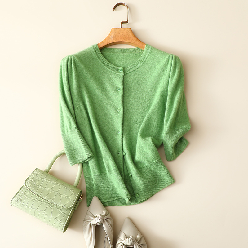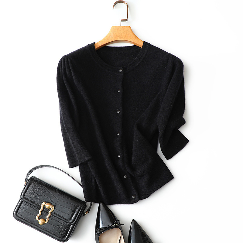 With its button-up front, delicate ribbed detailing, and minimalist design, this cardigan can easily be layered over blouses, dresses, or tops, adding a touch of elegance to your ensemble. Whether you’re dressing for a casual day at the office, a cozy weekend outing, or an evening out, the women’s short high-waist pure cashmere cardigan is a versatile wardrobe staple that combines effortless style and luxury.