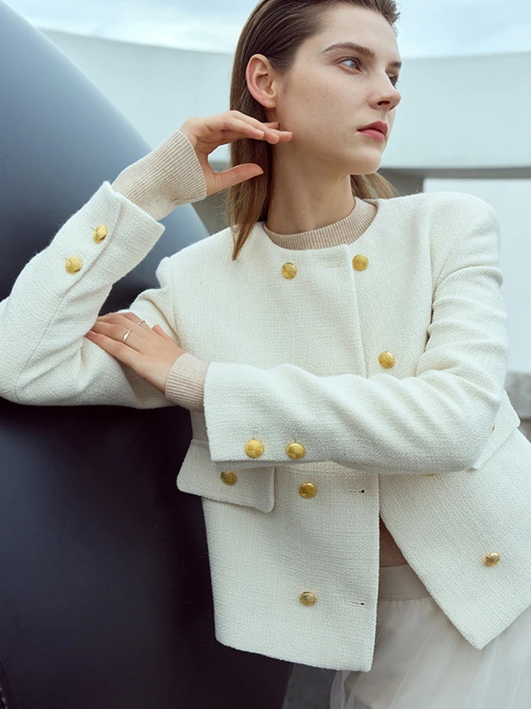 The timeless double-breasted closure adds a touch of classic style, while the loose silhouette ensures you can move freely, making it an essential piece for layering over your favorite spring outfits. Whether you’re dressing it up for a brunch date or pairing it with casual jeans for a laid-back day out, this jacket brings versatility and elegance to your wardrobe.